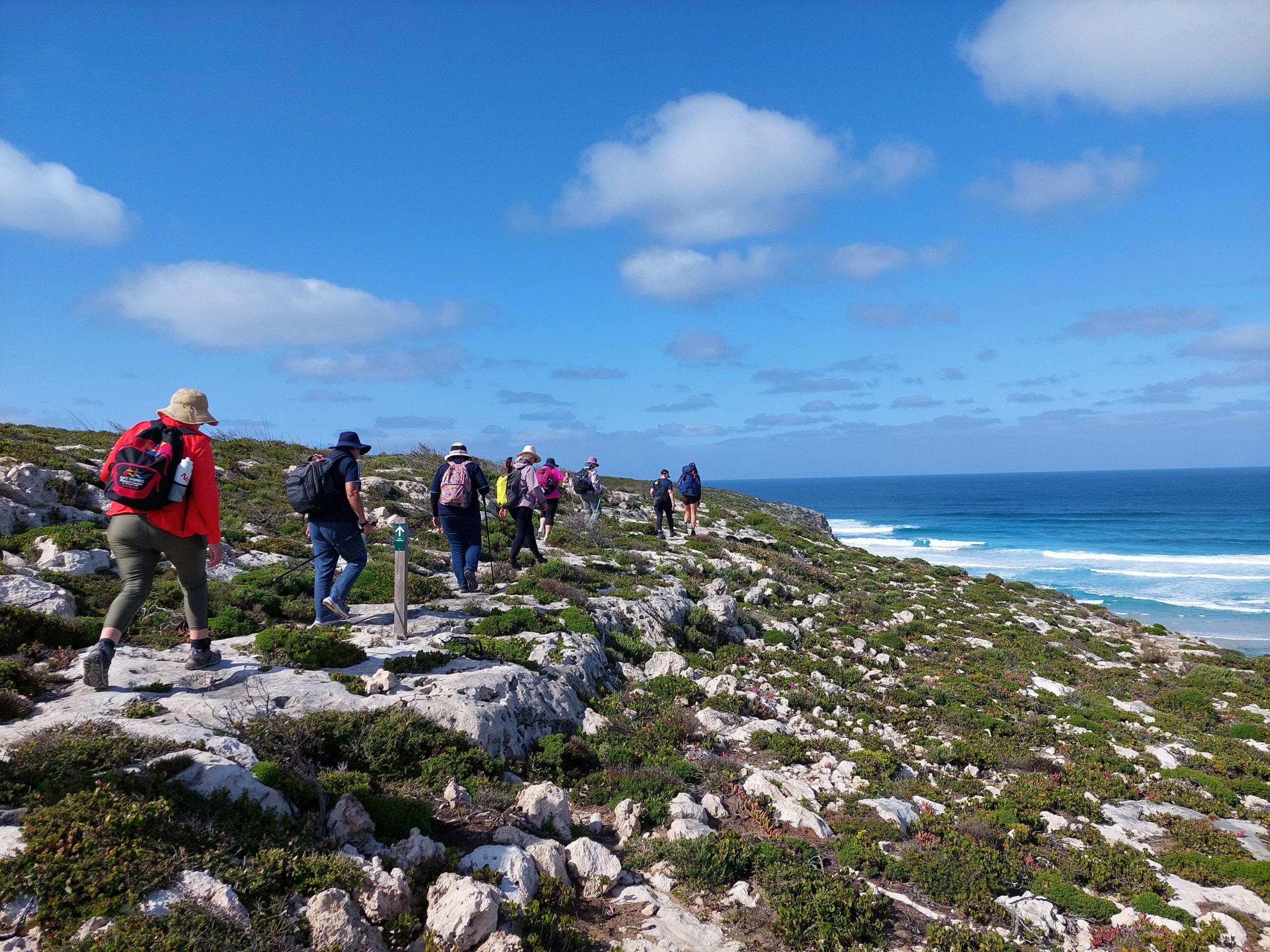 You’ll experience a beautiful mixture of coastal cliff edges and inland trails in the shade and away from coastal winds. A short side trip takes you to Sanderson Bay where in the right conditions, swimming is possible.