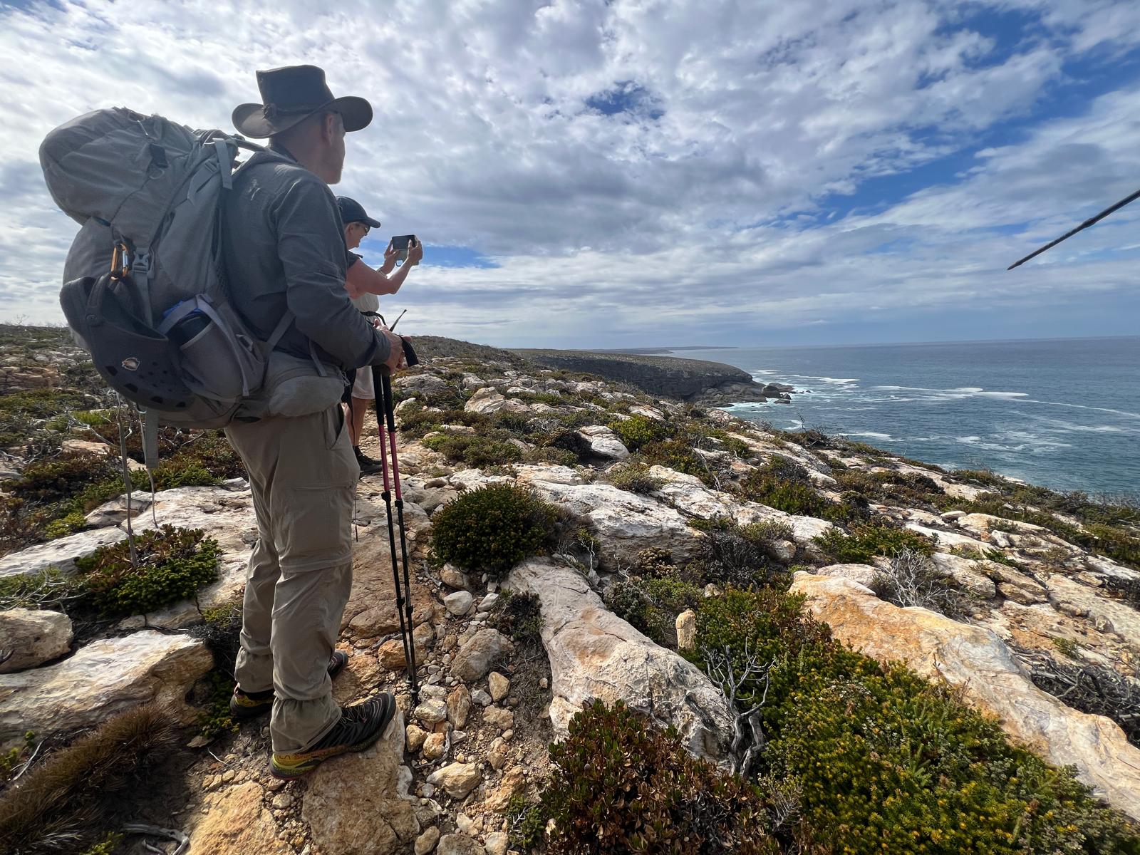 Mid-morning we begin our first walk, the Ironstone Hill Hike in the Baudin Conservation Park. This walk follows the historic Bullock Track towards Cape Willoughby and leads to Ironstone Hill, overlooking a magnificent coastal vista and revealing some of the area’s farming heritage.