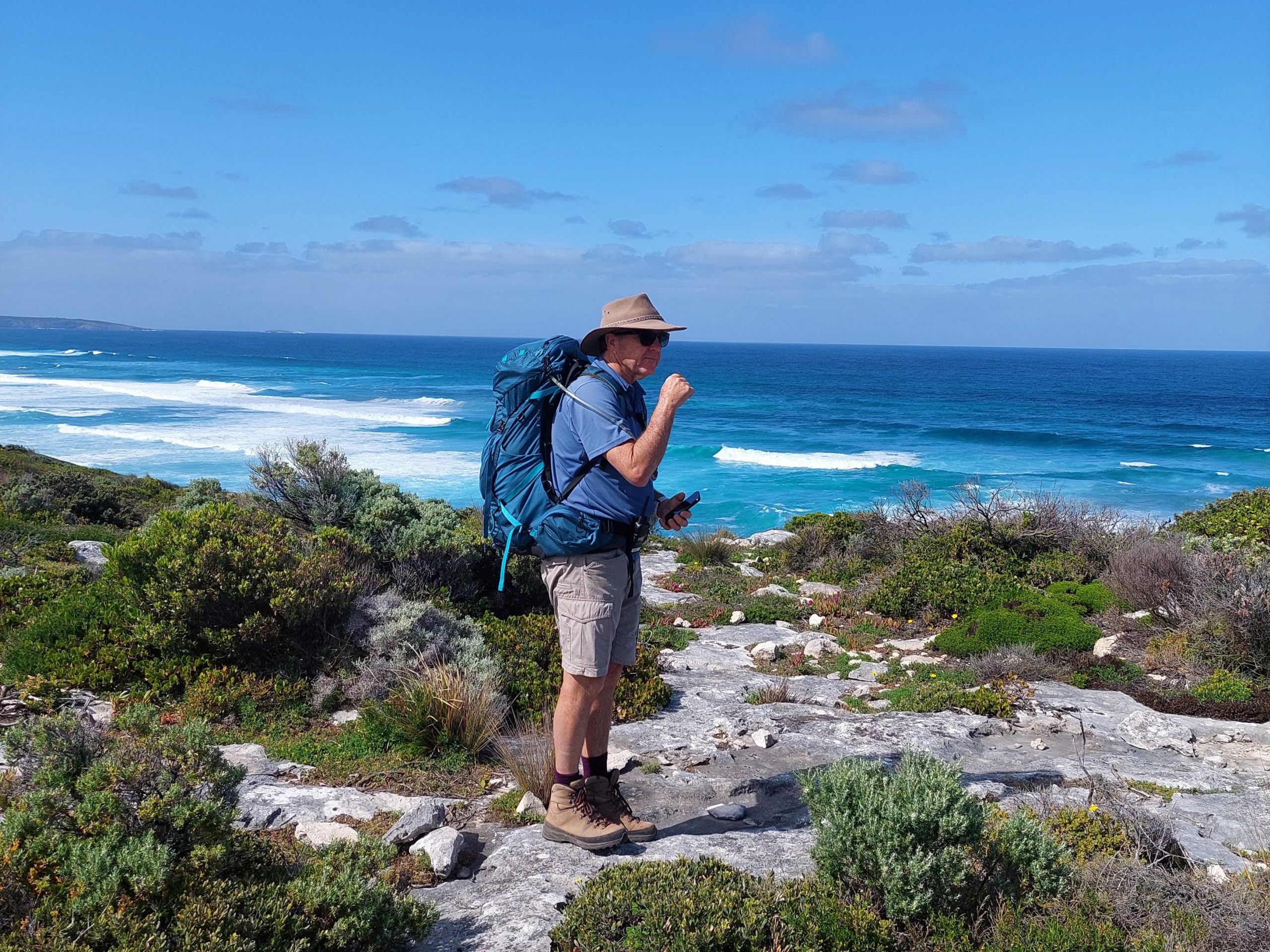 The Snake Lagoon to Cape du Couedic section is very exposed, rocky and long. The trail heads south up the rocky headland above where the mouth of the Rocky River meets the ocean. From there, we venture southeast, tracing the untamed coastal cliffs and bone white Maupertuis Beach that hugs the coastline of the majestic and vast Southern Ocean, leading us towards the Cape du Couedic lighthouse.
