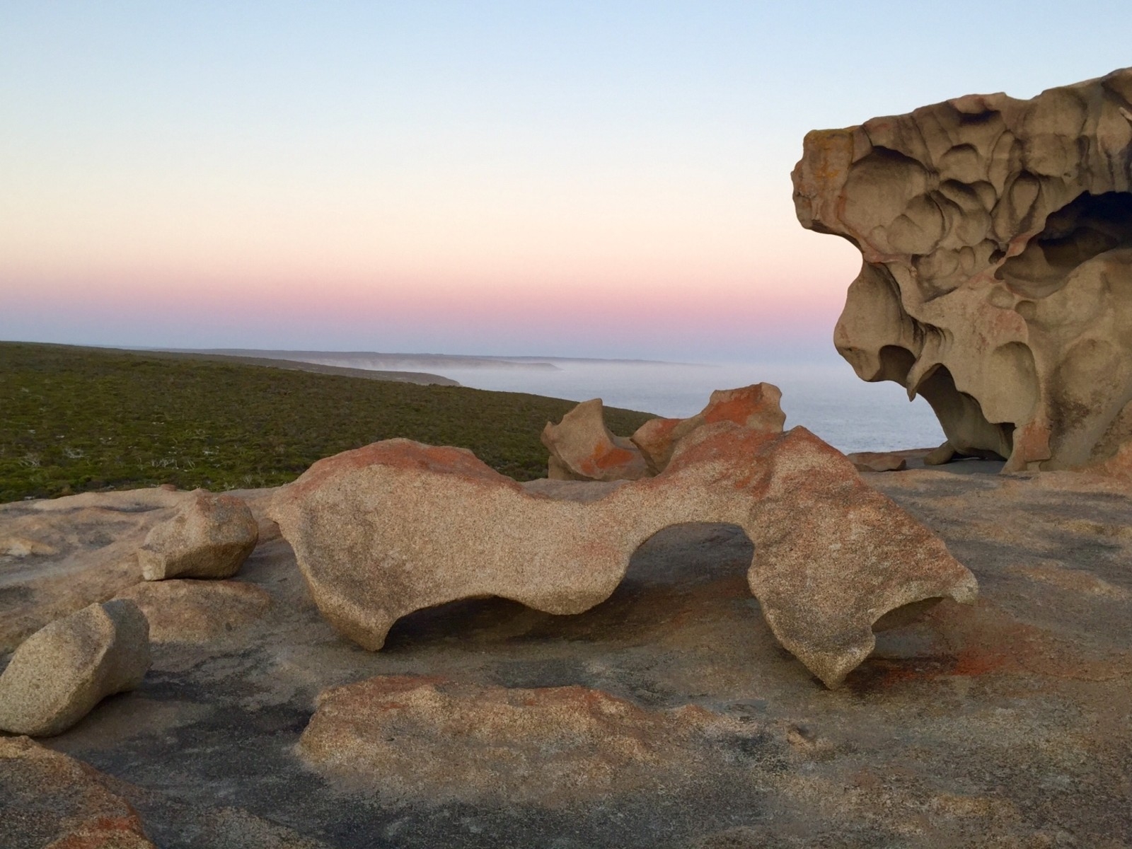 Then a quick trip in the van takes you to the Remarkable Rocks where you have time to explore and capture some iconic photos amidst seemingly artistic sculptures and extraordinary formations of the granite outcrops. Here we begin our walk along the Flinders Chase Wilderness Trail through the Sanderson section, one of the more remote sections of the trail.